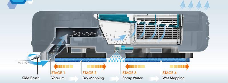 Robotický vysávač Hobot lege-668 prekvapí svojím unikátnym spôsobom upratovania. Pomocou špeciálneho systému FastBrush 4-Stage Cleaning totiž počas chvíle premení váš byt na nepoznanie. S využitím tohto systému dokáže vysať nečistoty, využiť suchý mop, automaticky zaistiť dávkovanie vody a neskôr zaradiť aj mokré mopovanie. Vysávač na podlahy bezpečne zbaví byt väčších nečistôt, vlasov, zvieracích chlpov. Funkcia suchého mopu zaručí účinné kmitanie po podlahe a stieranie aj toho najjemnejšieho prachu. Počas toho sa naštartujú špeciálne trysky, ktoré dávkujú vodu na čistené podlahy. Toto množstvo je regulované systémom Smart Spray. Nastáva posledná časť upratovania, a to funkcia kmitajúceho mopu, ktorý stiera a leští už navhlčenú podlahu.