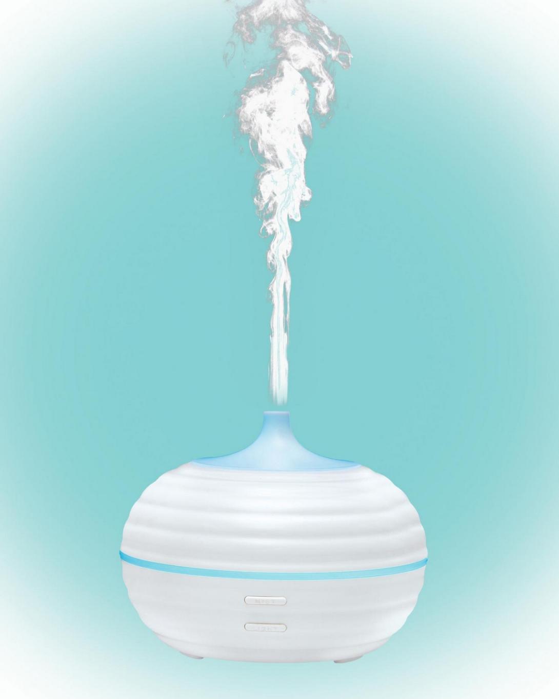 - Ultrazvukový zvlhčovač vzduchu, aróma difúzor s farebným / teplým bielym svetlom.