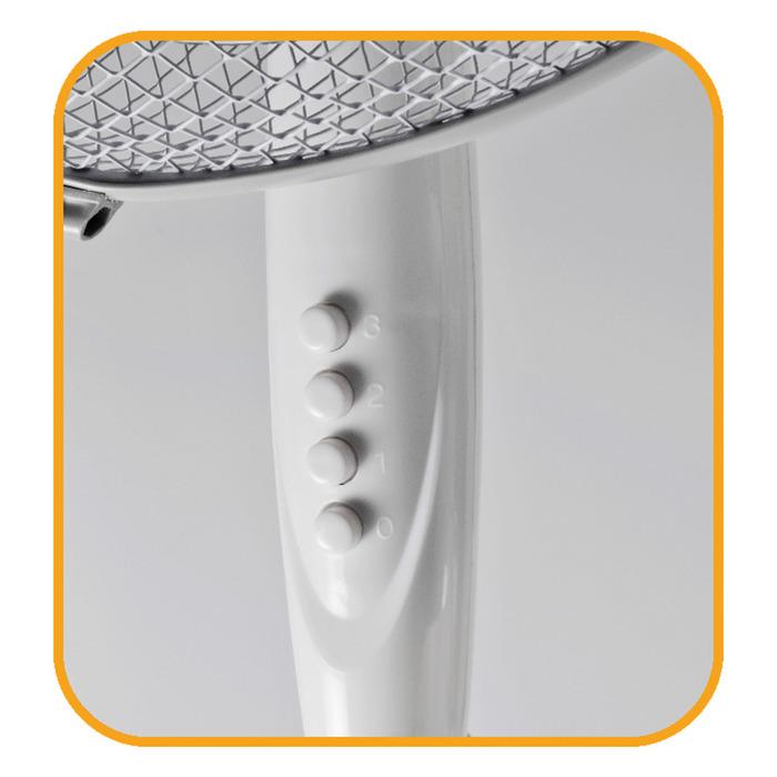 Stojanový ventilátor, Priemer vrtule: 40 cm, Vrtule: plast, priesvitný, Nastaviteľná výška: 110 - 130 cm, Stupne rýchlosti: 3, Výkon: 45 W, Hlučnosť: 67 dB(A)