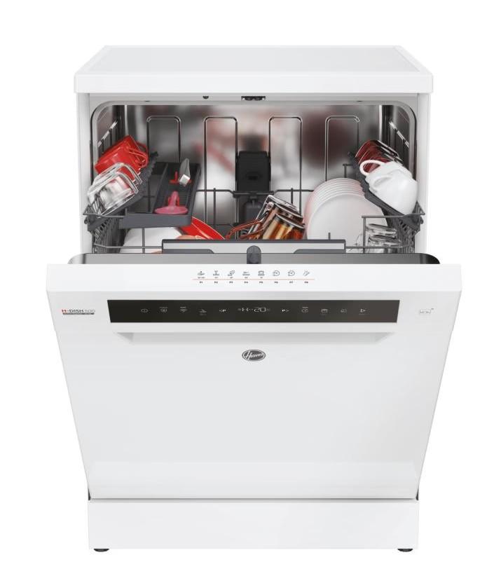 NOVÝ Hoover H-DISH 500 je schopný dokonale umyť, dezinfikovať a vysušiť akýkoľvek druh kuchynského riadu, dokonca aj ten najjemnejší. Je poháňaný inovatívnym systémom aktívnej ochrany hygieny: výkonné ošetrenie, ktoré dezinfikuje vašu umývačku riadu aj riad a odstráni až 99,9 % vírusov a baktérií.