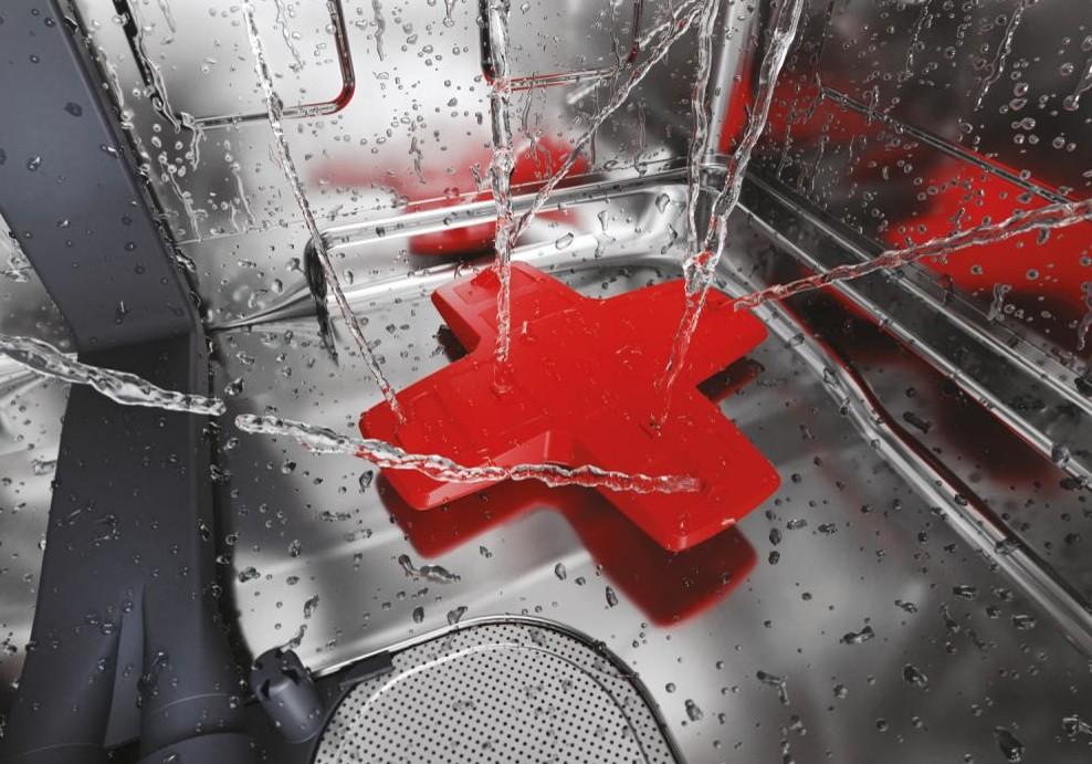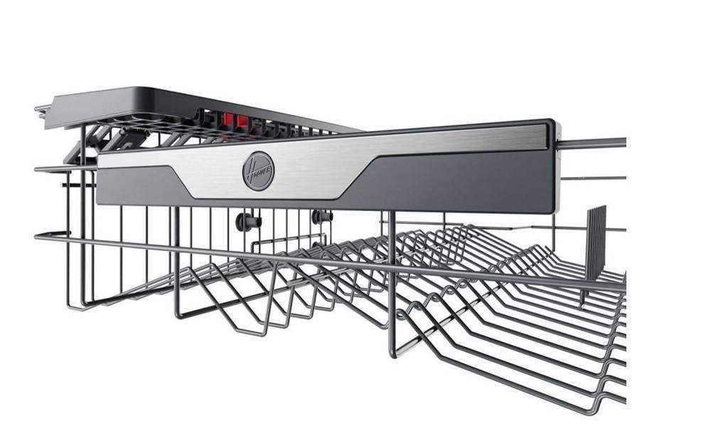 Nový Hoover H-DISH je poháňaný inovatívnym systémom aktívnej hygieny: výkonná dezinfekcia košov a hlavných plastových komponentov, podporovaná vysokými teplotami cyklu (> 65°), ktoré umožňujú špeciálne tlačidlo Active Hygiene.