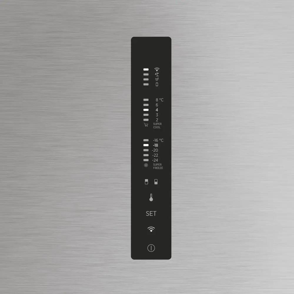 Pomocou externého displeja s dvojakým nastavením na dvierkach chladničky môžete nezávisle nastaviť požadovanú teplotu pre chladničku (od 2 °C do 8 °C) a mrazničku (od -16 °C do -24 °C). Môžete si tiež vybrať jednu z dostupných funkcií, ako je Dovolenka, Eco, Super Cool a Super Freeze, všetko je možné tiež spravovať prostredníctvom novej aplikácie hOn.