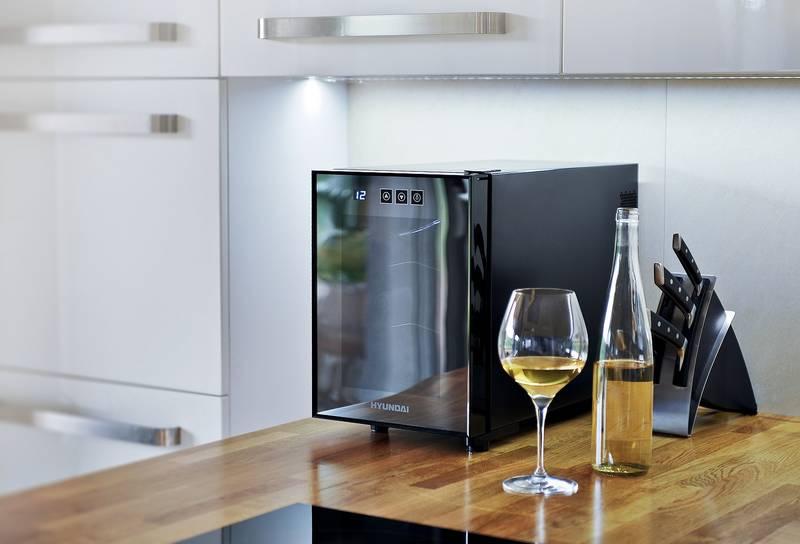 Vinotéka Hyundai VIN 6 ponúka ideálne skladovacie podmienky pre víno priamo u Vás doma, napríklad v obývacej izbe i menších rozmerov. Umožňuje nastaviť optimálnu teplotu v rozmedzí 8-18 ° C. Aktuálna vnútorná teplota je zobrazená na LED displeji s modrým podsvietením.