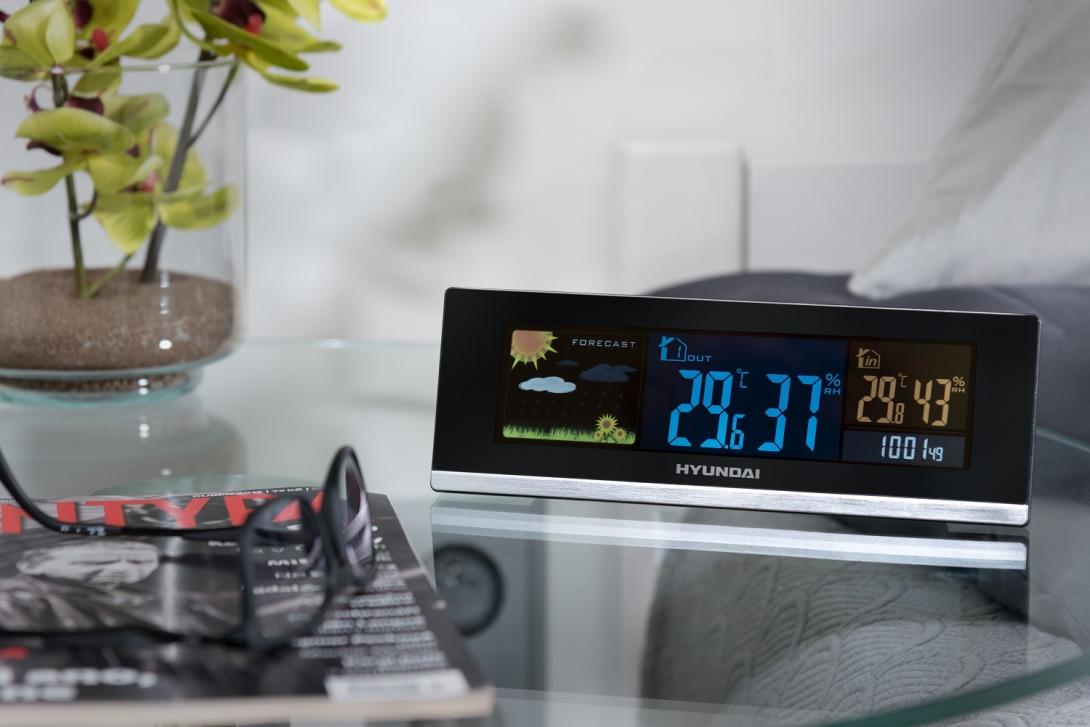 To je meteostanice Hyundai WS2468. Minimalistický dizajn čierneho rámčeka s kovovým prvkom je doplnený farebným displejom . Na ňom vždy prehľadne a jednoducho zistíte všetky potrebné údaje, ktoré meteostanice zobrazuje. Intenzitu podsvietenia farebného displeja je možné navyše jednoducho regulovať.