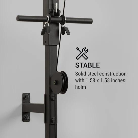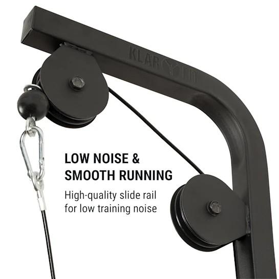 Posilňovacia kladka, Stabilná: pevná oceľová konštrukcia s 4 x 4 cm držadlom, Tichý chod: kvalitné klzné lišty pre nízky hluk pri tréningu