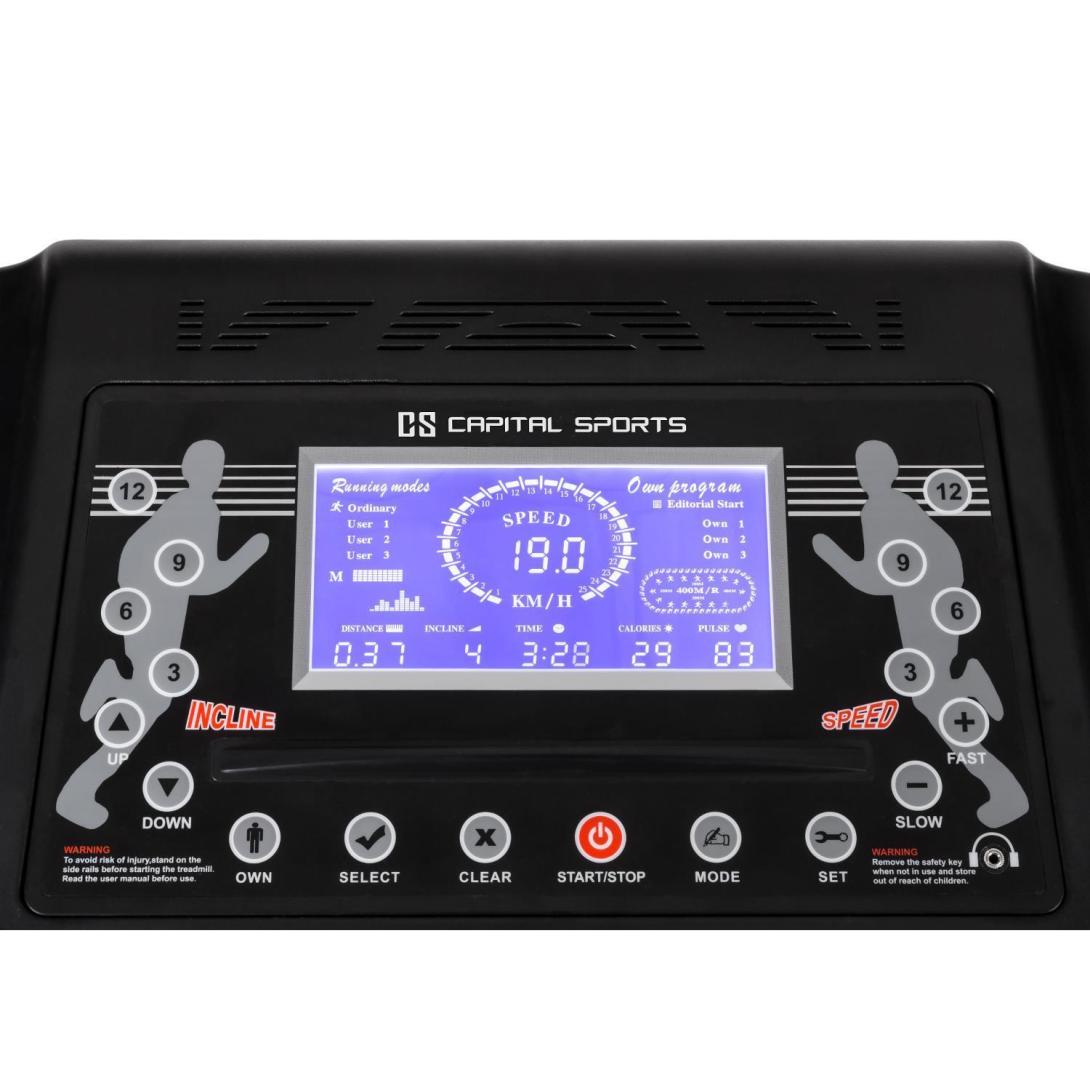 S výkonom 3 koní a nastaviteľnou rýchlosťou až do 22 km/h, s nastaviteľným stúpaním o 20%, 36 prednastavenými tréningovými programami a tiež so zobrazením spotreby kalórií, tepovej frekvencie, zabehnutej vzdialenosti, rýchlosti a času.