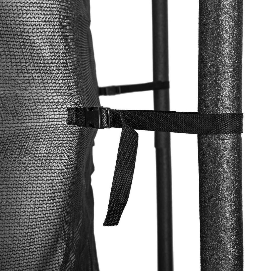 Tri dvojité čierne práškovo lakované nohy a proti UV žiareniu odolná polypropylénová skákacia podložka pre zvýšenie životnosti.