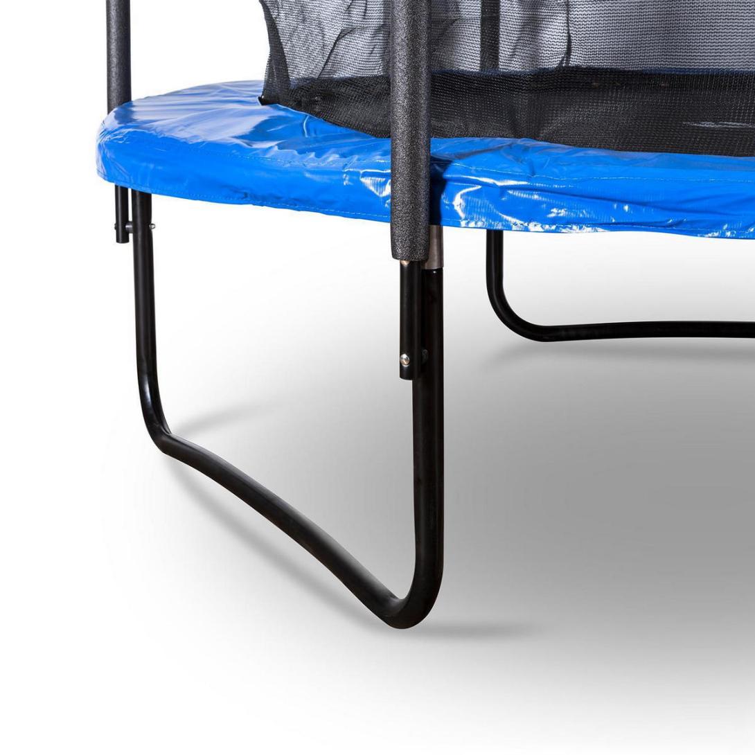 Športová 2,5 m trampolína s max. nosnosťou 150 kg, s vnútornou bezpečnostnou sieťou a polstrovanými tyčami.