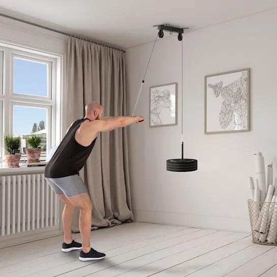 Vždy o niečo vpred: s priestorovo úspornou kladkou Klarfit Hangman môžete v domácom štúdiu kedykoľvek trénovať Váš chrbát, brucho či ramená.