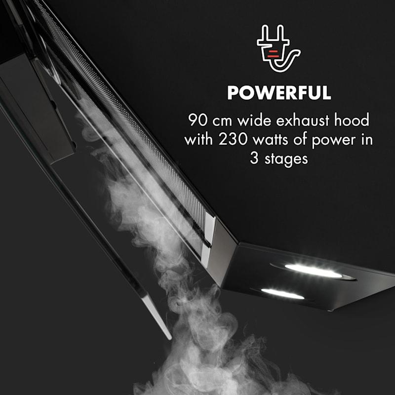 Svojím čistým a zároveň elegantným dizajnom s čiernym sklom sa odsávač pár Klarstein Annabelle 90 úžasne začlení do každého štýlu zariadenia kuchyne, pričom bude určite pútať pohľady.