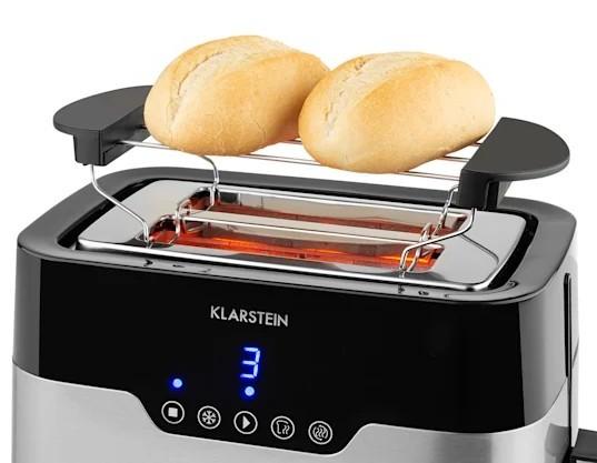 Vďaka silným 920 wattom sú hrianky a iné druhy pečiva v okamžiku opečené a pripravené na konzumáciu. Ovládanie je detsky ľahké: stačí vložiť požadované plátky do hriankovača a zvoliť úroveň opečenia a funkciu na dotykovom paneli, LED displej jasne ukazuje zvolenú voľbu. Flexibilná kovová mriežka sa prispôsobí hrúbke každého chleba a jemne ho tlačí nadol. Okrem siedmich nastaviteľných stupňov opečenia ponúka hriankovač aj funkciu rozmrazovania, zohrievania a funkciu prerušenia. Na pečenie pečiva je k dispozícii nádstavec, ktorý sa v prípade potreby dá umiestniť na hriankovač.