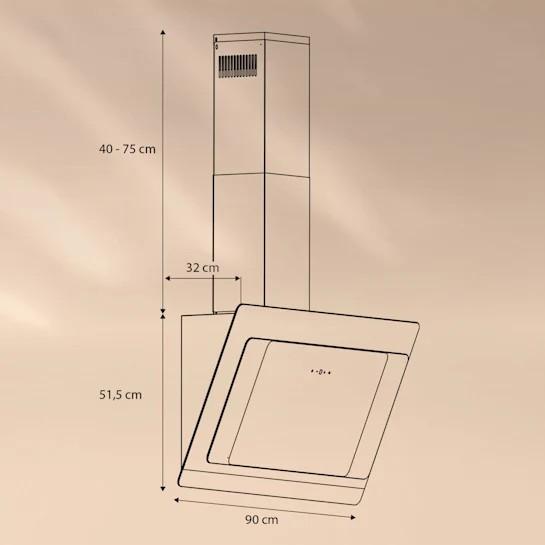 - Rozmery digestora: cca 89 x 58 x 33,5 cm (Š x V x H bez krytu na komín)