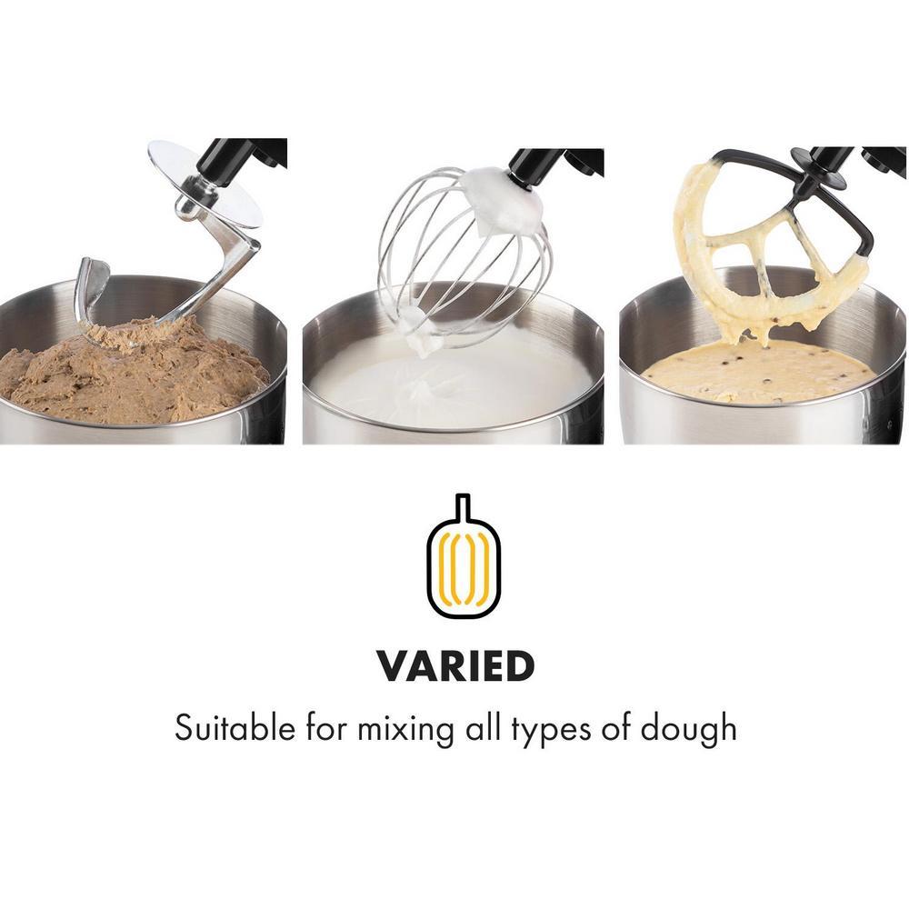 - Vždy správny nástroj: 3-dielna pracovná sada s hnetacím hákom, miešacím hákom a šľahačom