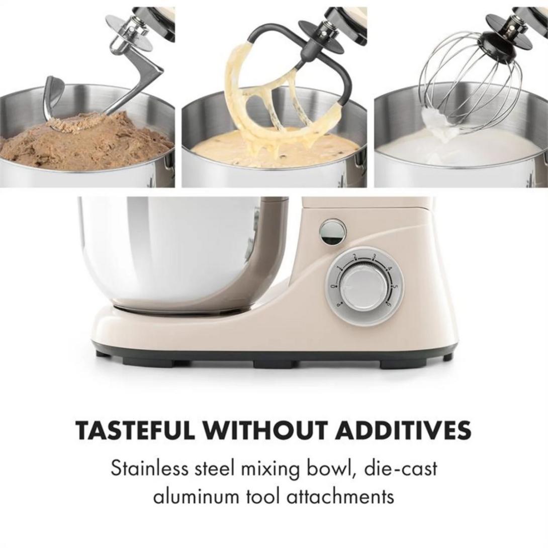 - Pravá chuť bez prísad: miska na miešanie z ušľachtilej ocele, pracovné nadstavce z tlakovo liateho hliníka