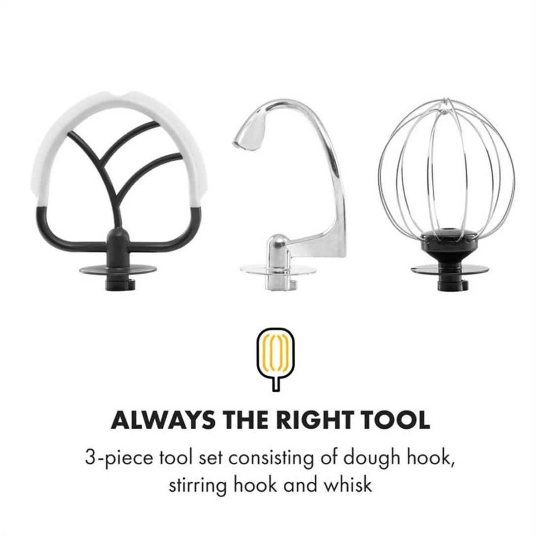 Súčasťou dodávky je hák na cesto a miešací hák z kvalitného tlakovo liateho hliníka a metlička z nehrdzavejúcej ušľachtilej ocele. Budete mať teda vždy ten správny nadstavec: hnetací hák na chlebové cesto, miešací hák na suroviny so strednou hustotou a metlička na šľahanie smotany alebo masla. Vďaka kompaktnej, tvarovo dokonalej konštrukcii z ABS plastu mixér Klarstein Bella Pico 2G nielenže zaberá veľmi málo miesta, ale v kuchyni tiež výborne vyzerá.