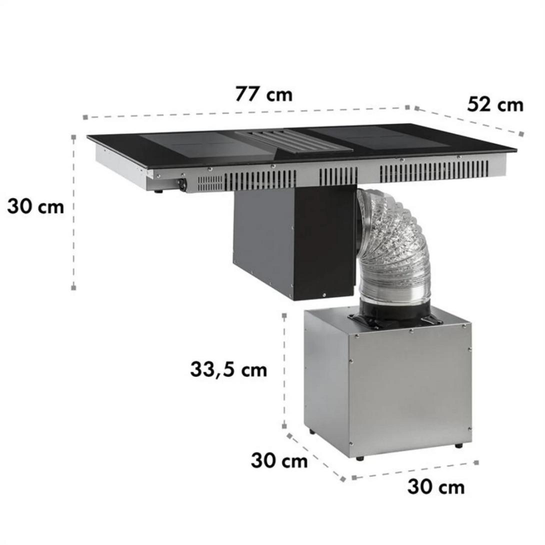 V strede Vašej novej kuchyne sa nachádza DownAir systém Klarstein Full House, takmer neviditeľný pod čiernym krytom z ušľachtilej ocele. Stred kuchyne so silným odsávaním, odsávač typu DownAir v režime odsávania vzduchu. Na rozdiel od tradičných digestorov nikdy neblokuje Vaše zorné pole, pretože je súčasťou varnej dosky a odsáva pary a pachy priamo nadol. Vďaka tomu je ideálny pre typické americké kuchyne s centrálnym kuchynským ostrovčekom, kde môžete variť spolu s priateľmi a rodinou. So svojím silným systémom AeroEfficiency s odsávaním 270 m³/h je mimoriadne efektívny a úsporný a zasluhuje si triedu energetickej účinnosti A+. Rovnako ako u známych DownDraft digestorov sa nachádza motor aj odsávacia hadica neviditeľne pod pracovnou doskou.