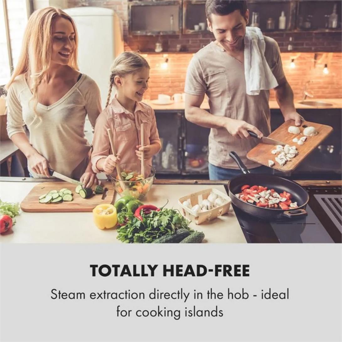 - Skutočne veľa miesta s voľným priestorom pre hlavu: odsávanie pár priamo vo varnej doske - ideálne pre kuchynské ostrovy