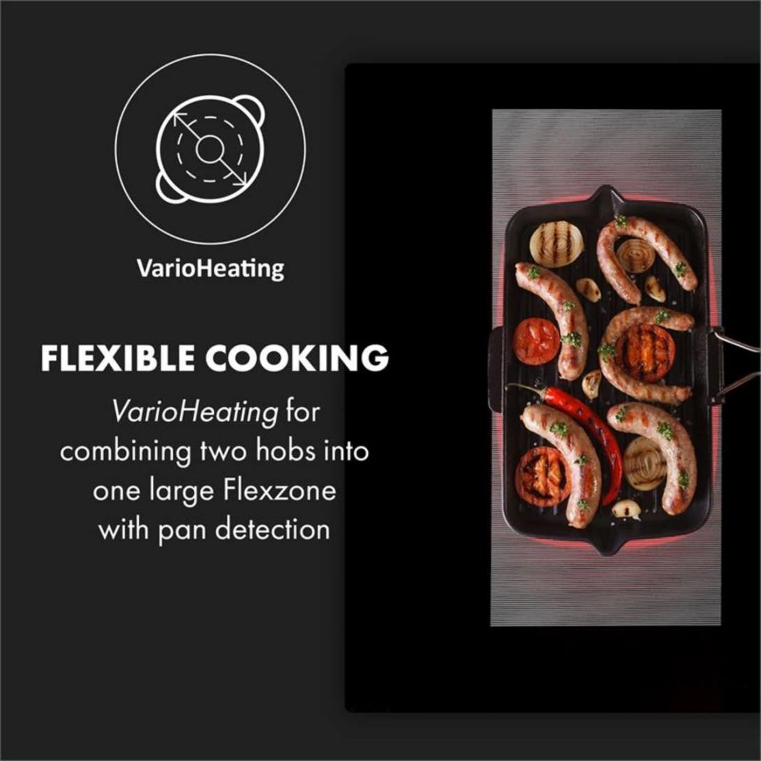 - Flexibilné varenie: VarioHeating na kombinovanie dvoch varných plôch do veľkej flexi zóny s detekciou hrnca