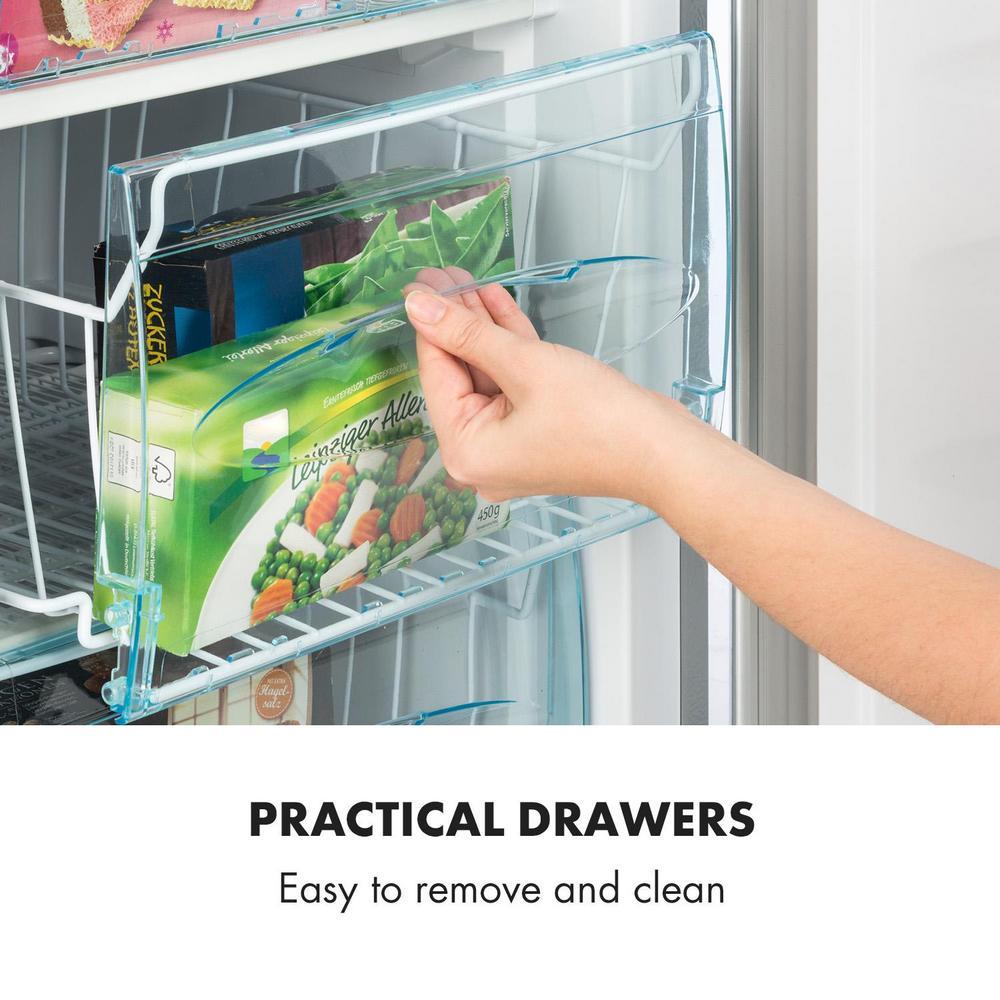 S kapacitou 75 litrov ponúka mraznička dostatok priestoru pre menšie aj väčšie jedlá, mraziaci výkon sa dá pohodlne nastaviť pomocou plynule otočného regulátora vo vnútri zariadenia. Vďaka samostatným zásuvkám s priehľadnou prednou časťou je mrazené jedlo dokonalo rozdelené a hygienicky uložené priestorovo šetrným spôsobom. Čistý dizajn mrazničkyprináša modernú eleganciu, vďaka ktorej sa zariadenie bezproblémovo začlení takmer do každej kuchyne.