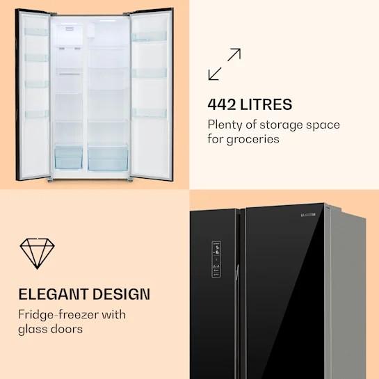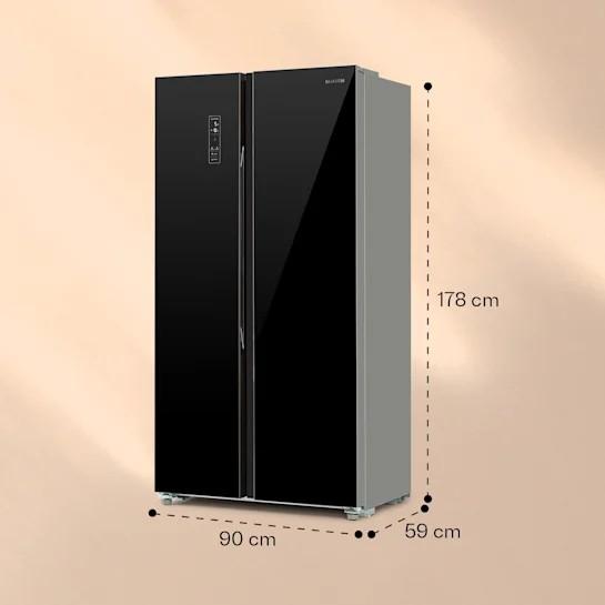 Americká chladnička, kapacita celkovo: 429 litrov, spotreba prúdu: 358 kWh/rok, teplotný rozsah chladničky: 2 až 8 °C, napájanie: 220 - 240 V / 50/60 Hz