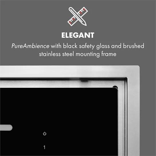 Diskrétna služba, elegantný dizajn: odsávač pár Klarstein High Line nie je iba pekný, ale aj flexibilný! Buď ako stropný digestor nad kuchynským ostrovčekom, alebo vďaka svojim kompaktným rozmerom aj nad vybavenou kuchyňou si v každej kuchyni ľahko nájde svoje miesto nad hrncami s parou. S výkonom motora 75 W pracuje nielen účinne s maximálnym odsávaním vzduchu až 410 m³/h, ale tiež veľmi štýlovo. S čiernym lesklým saténovým sklom, upevňovacím rámom z kartáčovanej ušľachtilej ocele a nezávisle zapínateľným 9-farebným pôsobivým svetlom sa postará v kuchyni o špeciálnu atmosféru. Vďaka dodanému filtru s aktívnym uhlím nepotrebuje ani vetraciu šachtu. Nasávaný kuchynský vzduch sa tu priamo filtruje a uvoľňuje späť do kuchyne – nie sú potrebné žiadne ďalšie stavebné opatrenia ani nákupy. S tromi výkonnostnými úrovňami si poradí s každým kuchynským pachom a vznikom pár a dá sa jednoducho ovládať pomocou dotykového displeja alebo pohodlne prostredníctvom diaľkového ovládača.