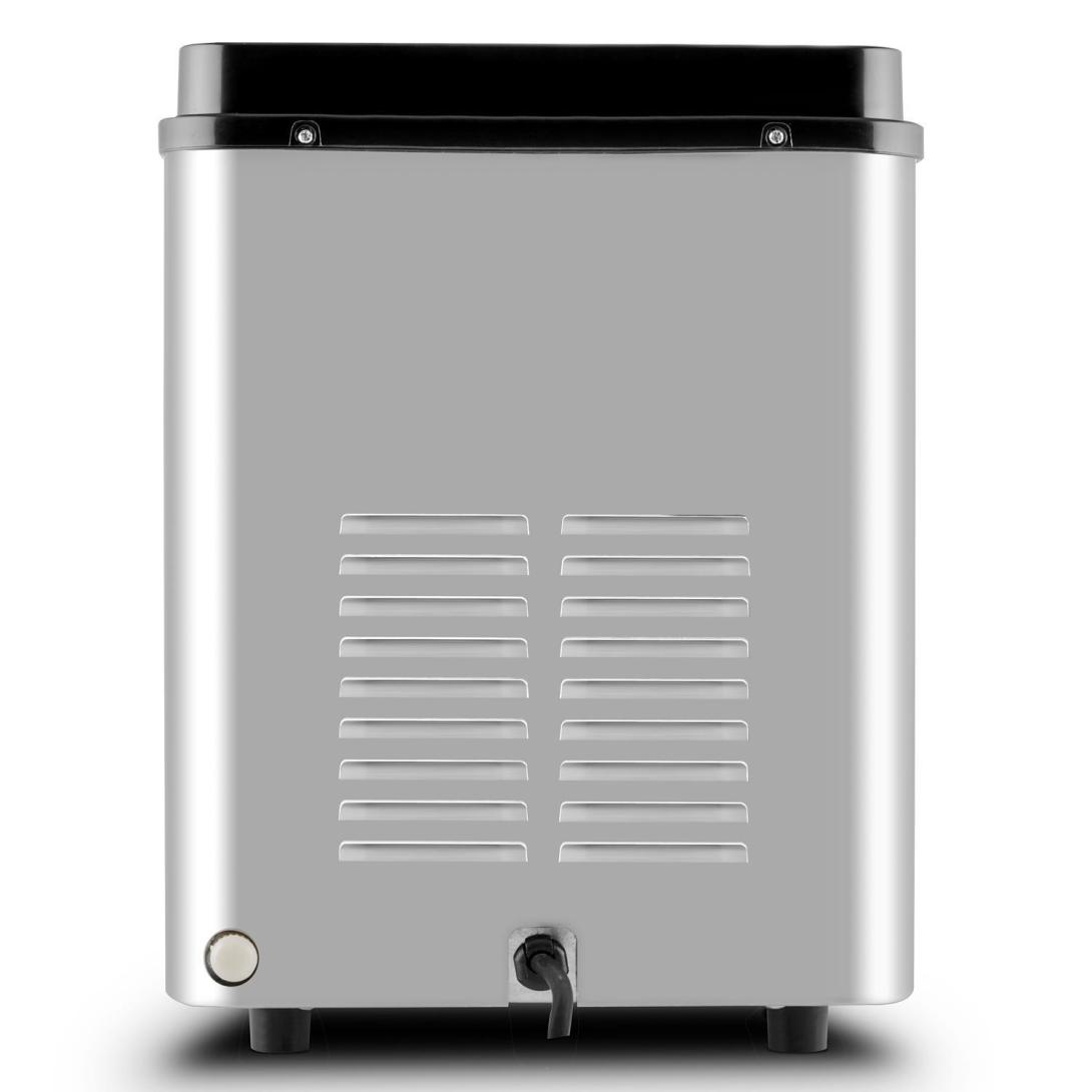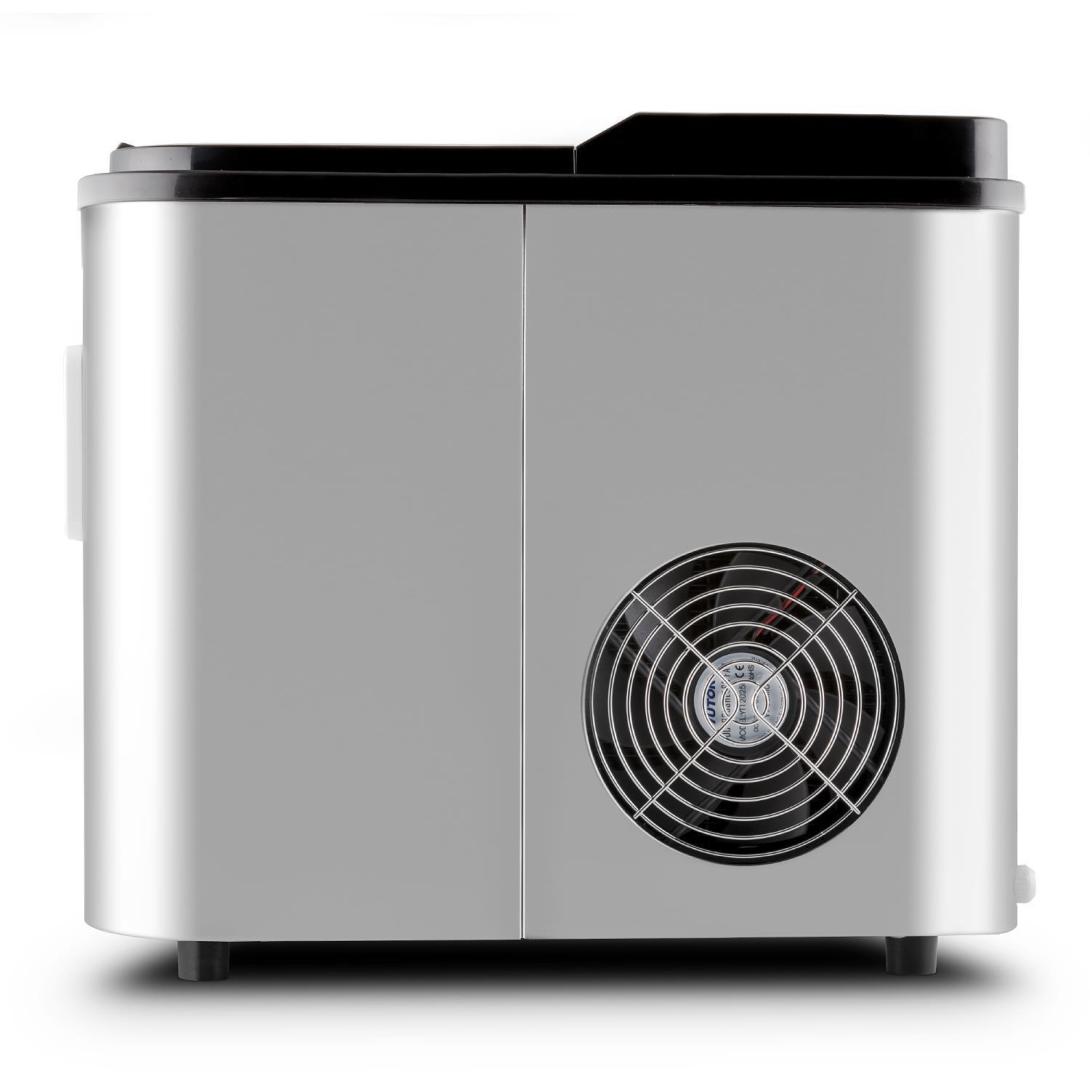 So svojimi šikovnými rozmermi sa zariadenie Icemeister ľahko vojde do kuchyne, na pulty alebo do párty miestnosti. Poteší Vás tam nielen pravidelnou dodávkou kociek ľadu. Jeho elegantná konštrukcia z nerezovej ocele, ktorá spĺňa požiadavky na tvar a vzhľad moderného dizajnu, rozhodne zaujme svojim dizajnom. Vďaka čiernemu plastovému veku s priehľadným oknom a modrému LED diódovému svetlu pôsobí naozaj profesionálne.