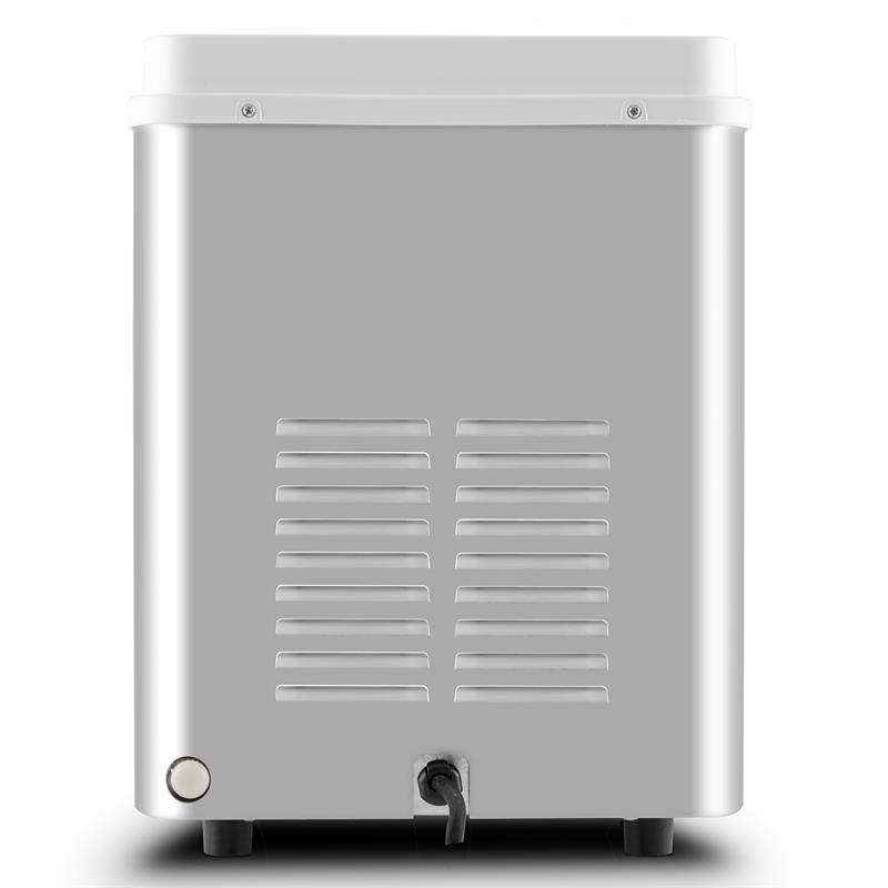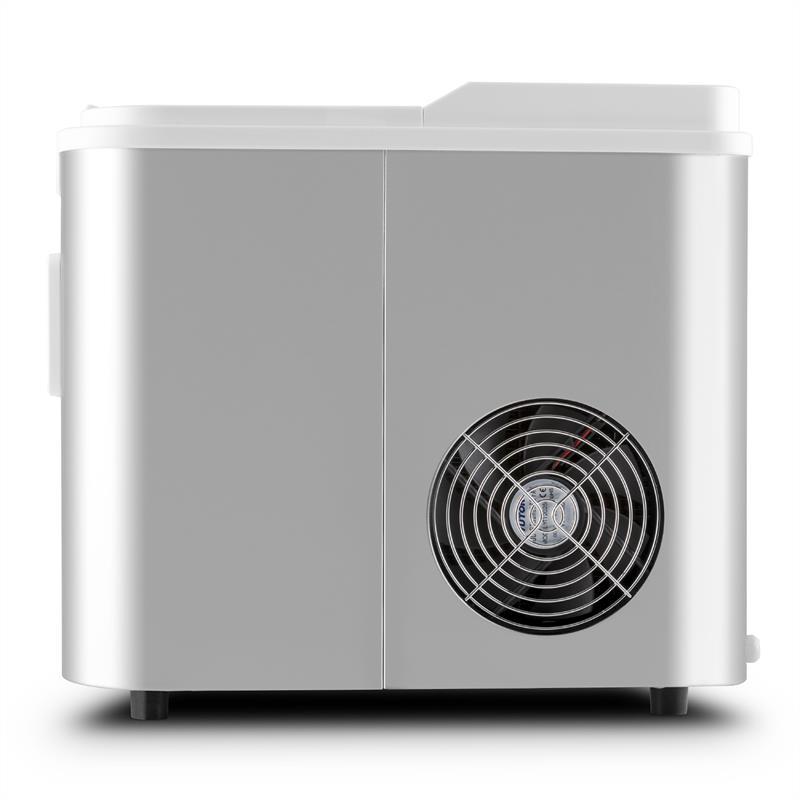 So svojimi šikovnými rozmermi sa zariadenie Icemeister ľahko vojde do kuchyne, na pulty alebo do párty miestnosti. Poteší Vás tam nielen pravidelnou dodávkou kociek ľadu. Jeho elegantná konštrukcia z nerezovej ocele, ktorá spĺňa požiadavky na tvar a vzhľad moderného dizajnu, rozhodne zaujme svojim dizajnom. Vďaka bielemu plastovému veku s priehľadným oknom a modrému LED diódovému svetlu pôsobí naozaj profesionálne.