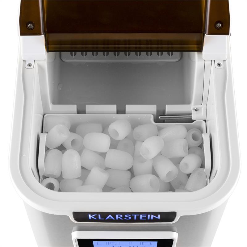 Do zariadenia Icemeister sa vojde 2,2 litra vody, okamžite po naplnení sa začína s výrobou. Po 15 minútach už cinká prvých 9 kociek v zbernej nádobe. Potom prichádza na rad 150 W zariadenia: v 10-minútových intervaloch vyklápa po 9 ďalších kociek, kým sa voda minie alebo kým nie je 0,8-litrová (cca 0,9 kg ľadu) nádrž plná. Oboje - žiadna voda alebo plný zásobník na ľad – sa zobrazí na modrom osvetlenom LCD displeji zariadenia. Ak je voda pravidelne dopĺňaná a nádoba vyprázdňovaná, zariadenie zvládne vytvoriť až 12 kg ľadu za 24 hodín.