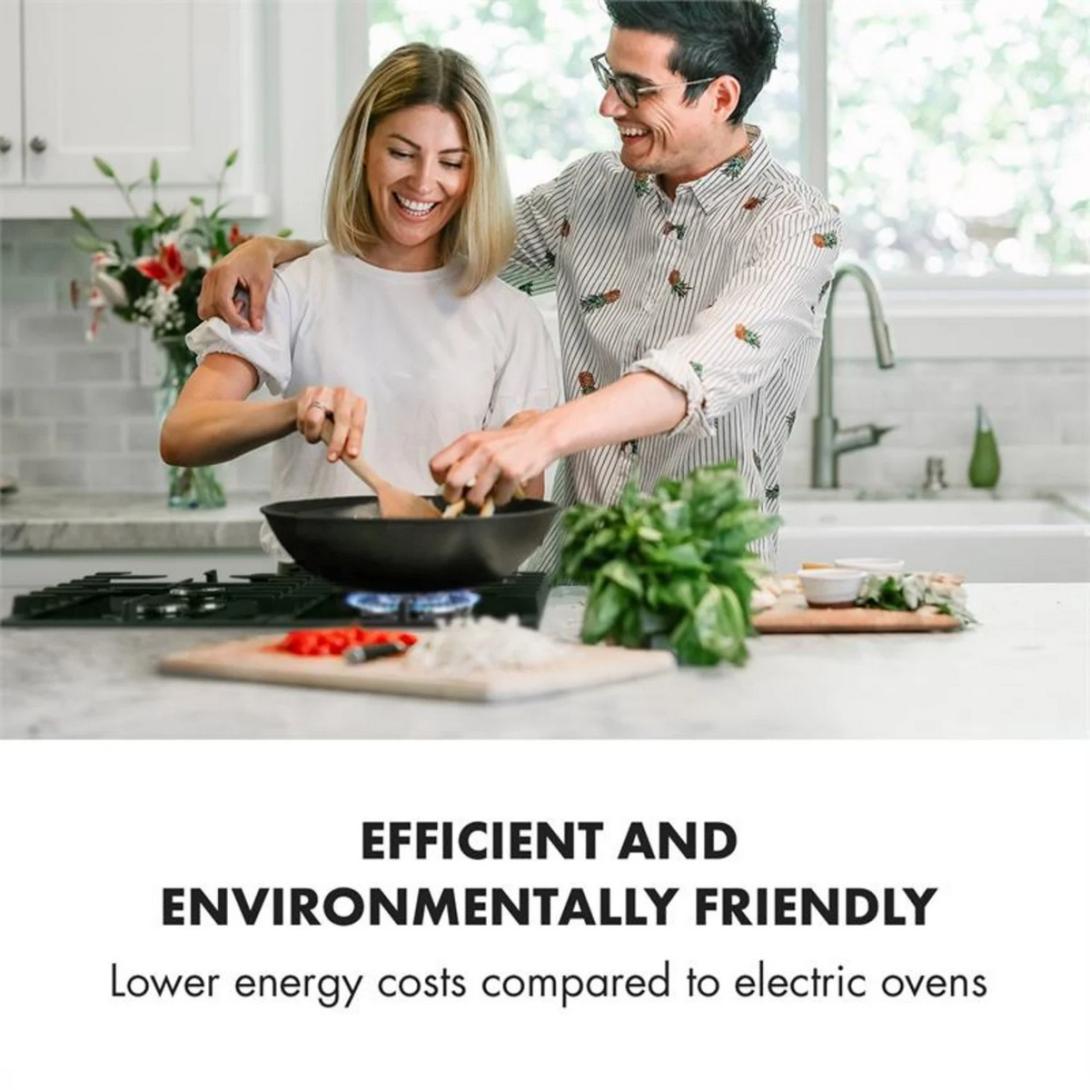 - Efektívna a šetrná k životnému prostrediu: nižšie energetické náklady v porovnaní s elektrickými sporákmi