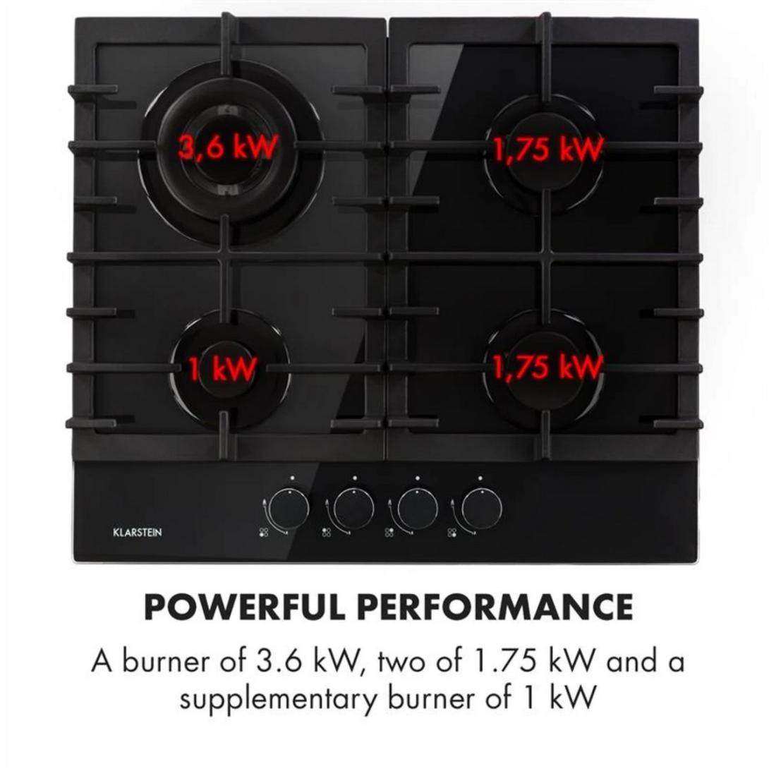 KLARSTEIN IGNITO 4, PLYNOVA VARNA DOSKA, 4 HORAKY, HORAKY SABAF, SKLOKERAMIKA, CIERNA, 10033132
