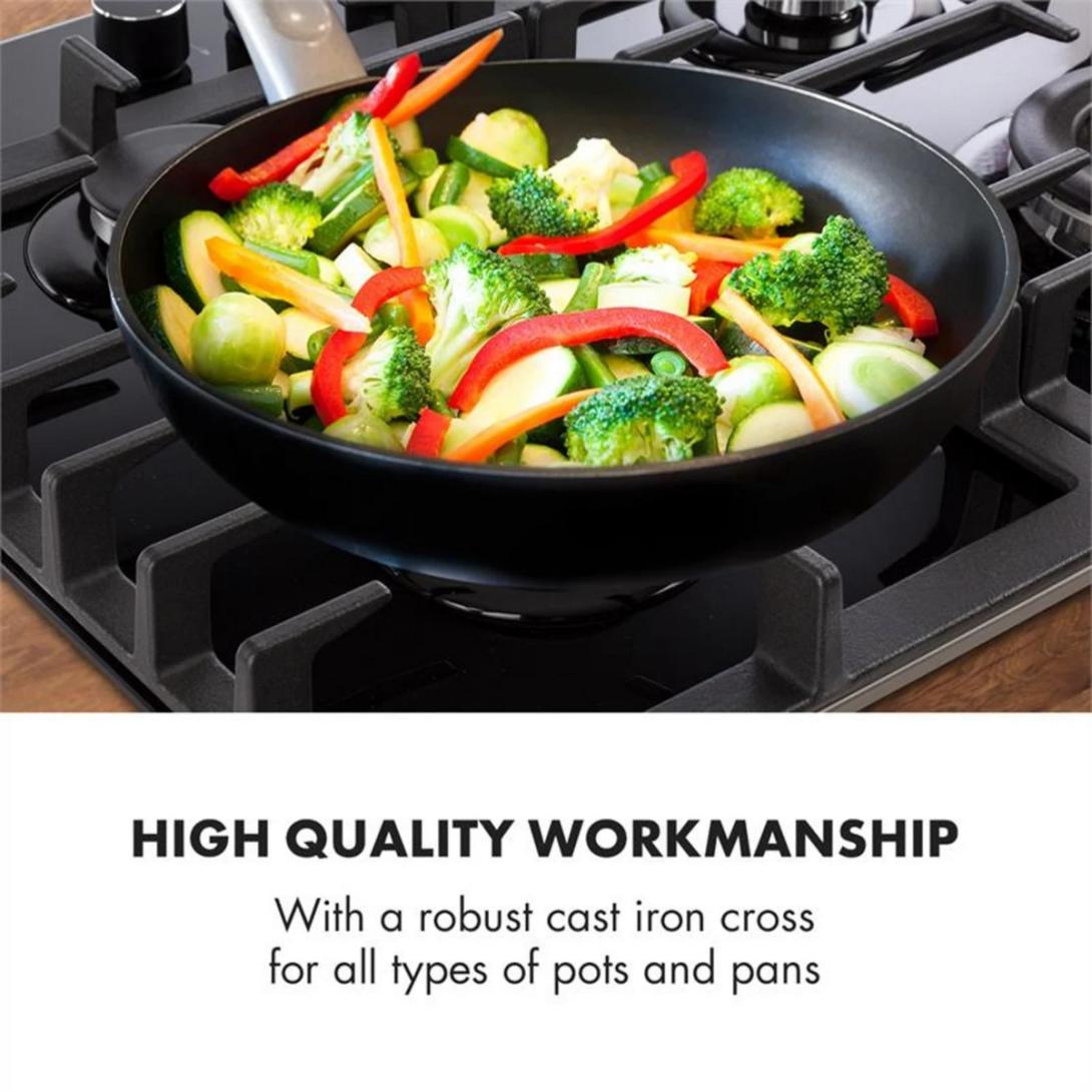 - Kvalitné spracovanie: s robustnými mriežkami z liatiny pre všetky typy hrncov a panvíc
