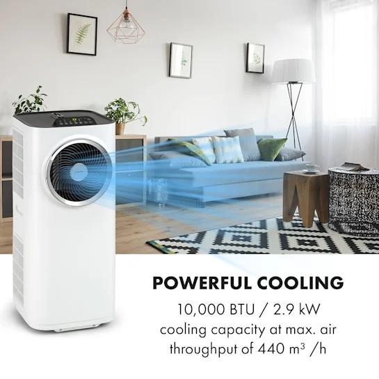Silný výkon pre chladivé teploty: vychutnaj si s klimatizáciou Klarstein Kraftwerk Smart10K mnoho funkcií prenosnej sviežosti.