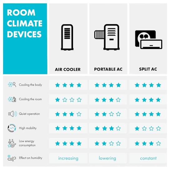 - Kategorizácia produktu podľa obrázku s porovnaním výkonu zariadení: Portable AC