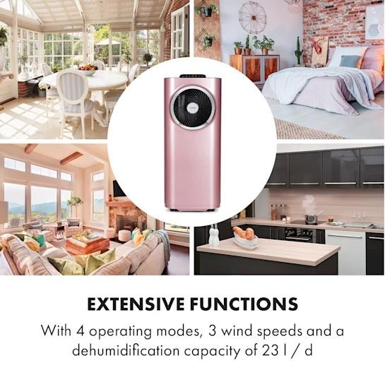 - Rozsiahle funkcie: so 4 prevádzkovými režimami, s 3 rýchlosťami vetra a s odvlhčovacím výkonom 23 l/hod.