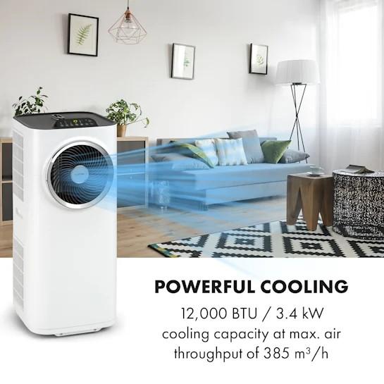 Silný výkon pre chladivé teploty: vychutnaj si s klimatizáciou Klarstein Kraftwerk Smart 12K mnoho funkcií prenosnej sviežosti.