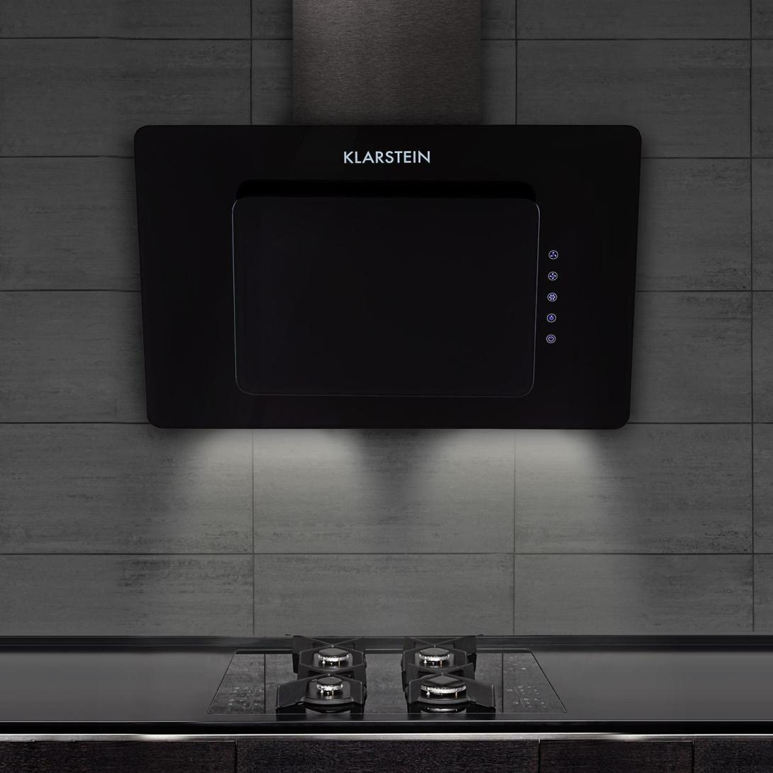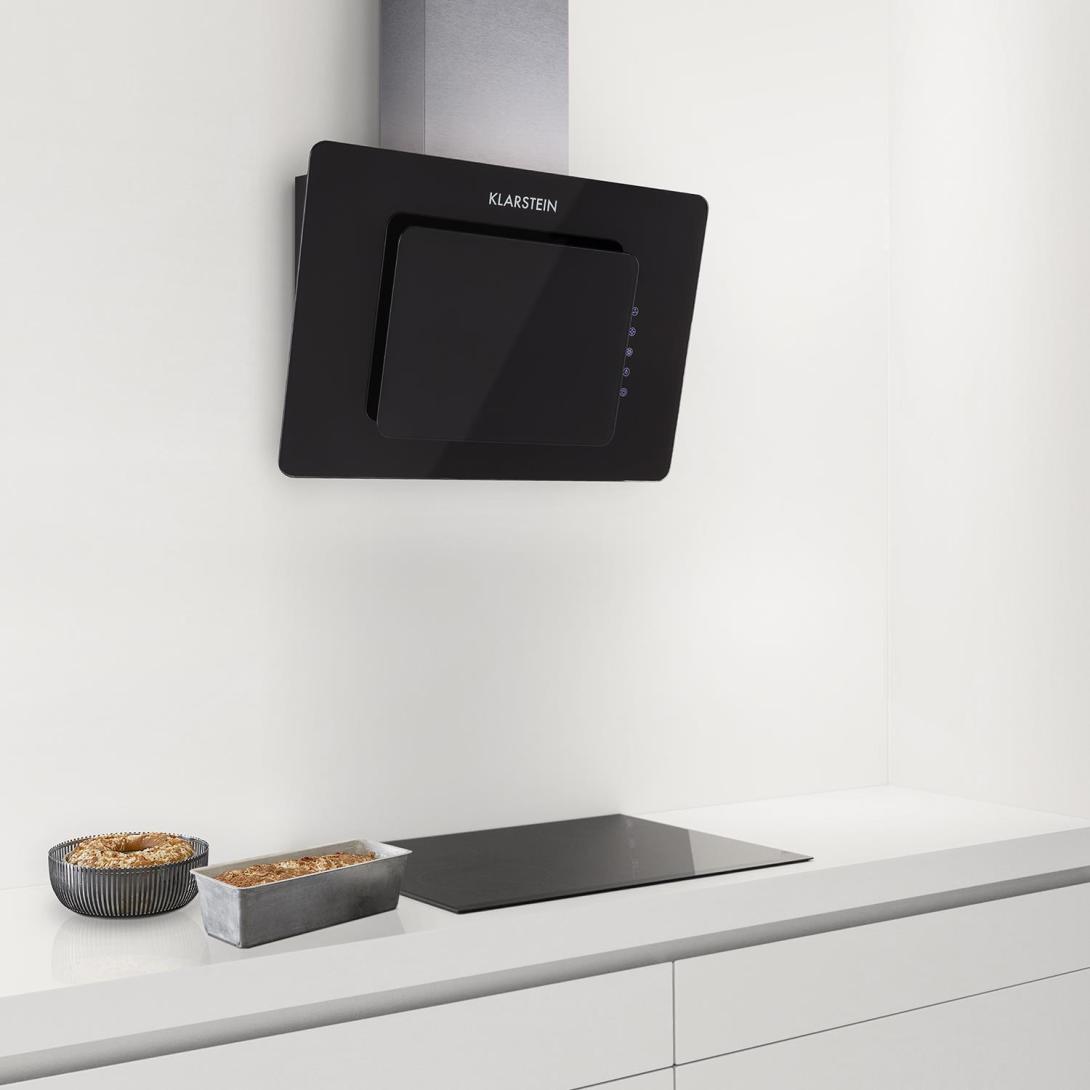 Elegantná predná časť z tvrdeného špeciálneho skla digestora Klarstein Lorea podčiarkuje štýlovosť moderne zariadených kuchýň, zároveň však môže vystupovať ako luxusný kontrastný prvok v klasických kuchyniach. Mimoriadne akcenty tvoria aj čierna lesklá predná strana a leštená ušľachtilá oceľ vyťahovacieho komína, v ktorom sa skrýva odvetrávacia trubica.