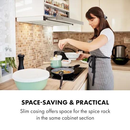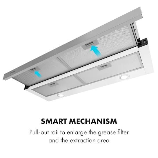 - Inteligentný mechanizmus: výsuvná lišta na zväčšenie tukového filtra a odsávacej plochy