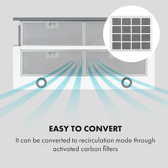 - Jednoducho prestaviteľný na recirkuláciu: možno prestavať na recirkulačnú prevádzku pomocou filtrov s aktívnym uhlím