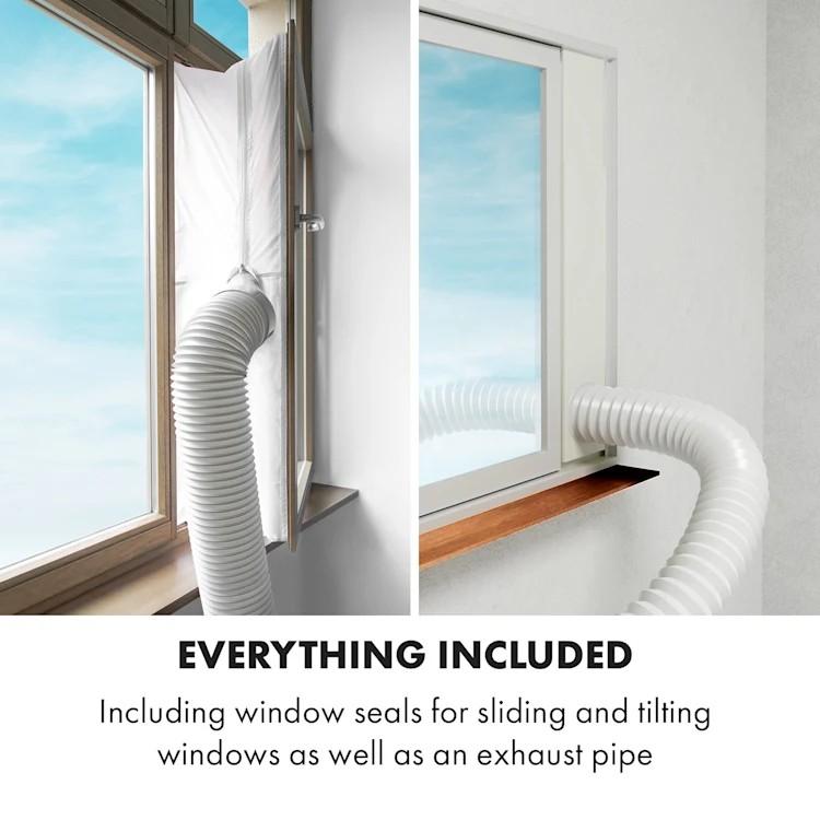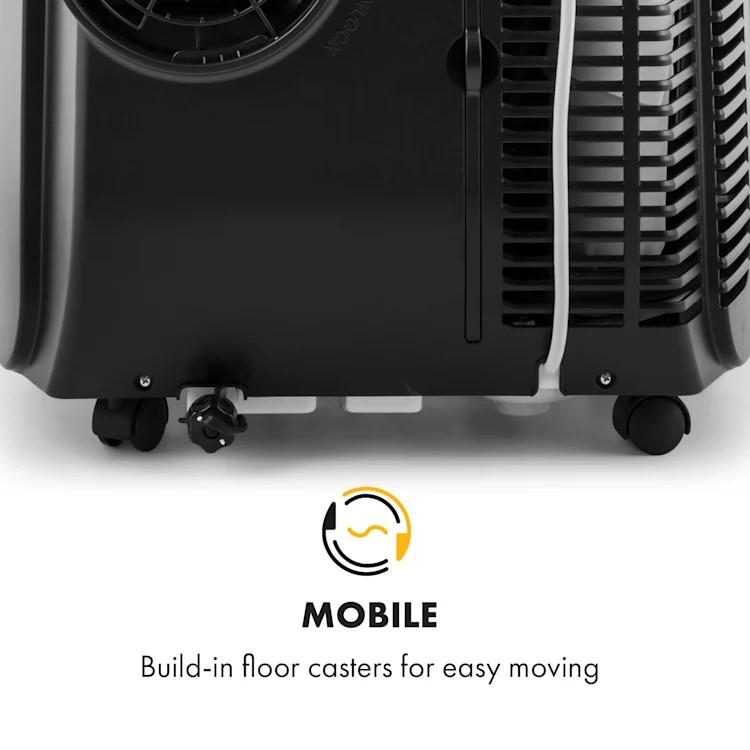 Montáž 3-v-1 klimatizácie je úplne jednoduchá: dodávanú hadicu na odpadový vzduch pripojte na zariadenie a vyveďte z okna. Aby sa dovnútra nedostal žiadny teplý vzduch, je dodávaná tesniaca sada na posuvné okno a vyklápacie okno. Vďaka zabudovaným kolieskam, je klimatizácia ľahko prenosná a dá sa umiestniť kdekoľvek v miestnosti.