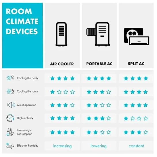 - Kategorizácia produktu podľa obrázku s porovnaním výkonu zariadení: Portable AC