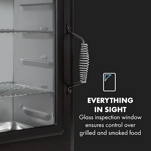 - Prehľad o všetkom: priehľadné okno zo skla zabezpečuje kontrolu grilovaných a údených potravín