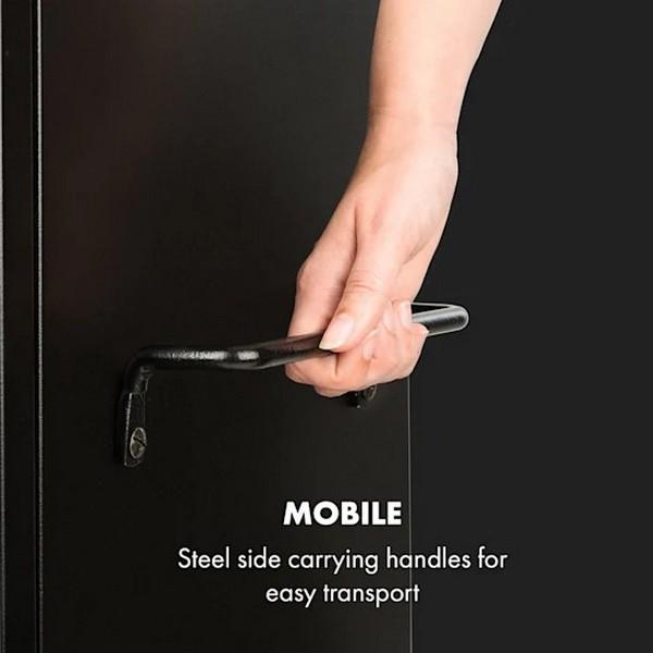 S tepelným výkonom 2,5 kW a maximálnou teplotou 250 °C je plynový gril s udiarňou Pasadena vhodný nielen na spoľahlivú prípravu kvalitných grilovaných potravín, ale môže tiež slúžiť ako udiareň a vodný gril na mäso a zeleninu. Dvojstenné oceľové dvere s práškovým lakovaním zabezpečujú trvalo vysokú teplotu bez tepelných strát, zatiaľ čo priehľadné sklenené okno umožňuje kontrolu grilovaných a údených potravín. 3-dielny grilovací rošt z pochrómovanej ocele má k dispozícii 5 možností umiestnenie, ktoré zabezpečujú správnu výšku nad okrúhlym horákom z ušľachtilej ocele a tým zaručujú najlepšie výsledky grilovania, údenia a varenia. Vďaka konceptu InstantReady Concept s dodávanou plynovou hadicou a tlakovým ventilom sa dá gril s udiarňou jednoducho pripojiť priamo k plynovej fľaši a môže byť ihneď uvedený do prevádzky bez nutnosti nákupu ďalšieho príslušenstva. Piezo zapaľovač na zadnej strane zariadenia zapáli plameň, ktorého intenzita môže byť regulovaná pomocou plynulého regulátora teploty. Integrovaný teplomer umožňuje doplnkovo k pozorovaciemu okienku aj presné sledovanie diania a dosahovania požadovaných výsledkov. Uzatváracia vzduchová klapka na vrchnej strane grilu s udiarňou zabezpečuje regulovateľnú ventiláciu. Bočné držadlá okrem toho uľahčujú premiestnenie a umožňujú ľahkú prepravu.
