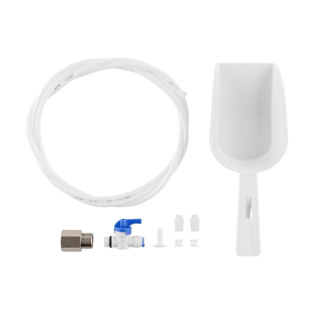 Zariadenie pre prípravu kociek ľadu s výkonom 450 W a s objemom produkcie 30 kg za deň ako aj s 3 kg úložným priečinkom na ľad.