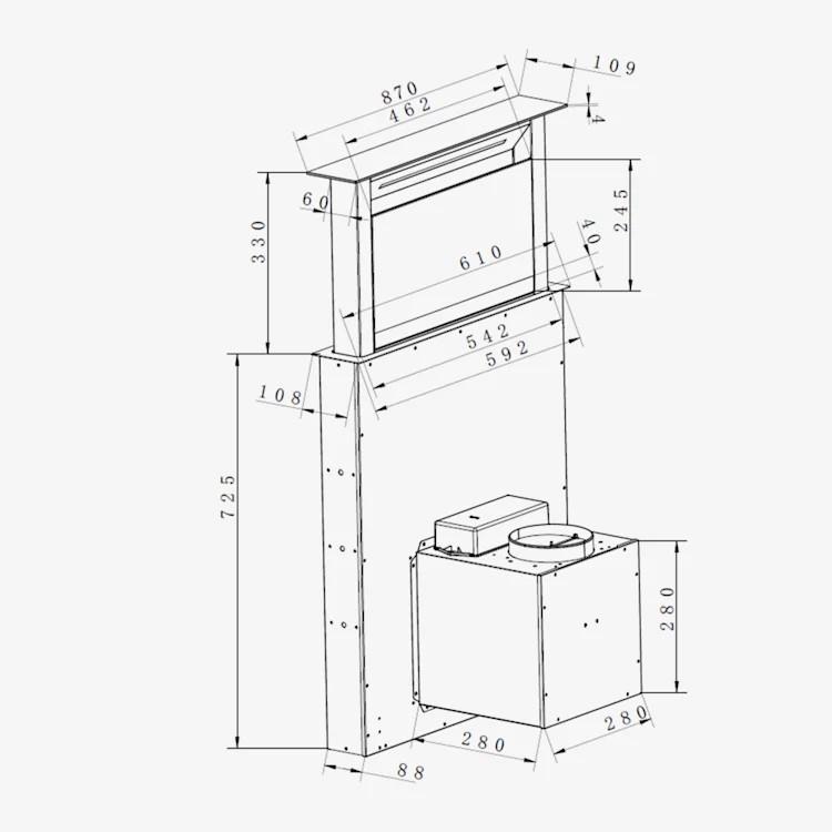 - Rozmery digestora: cca 85 x 72,7 x 8,8 cm (Š x V x H)