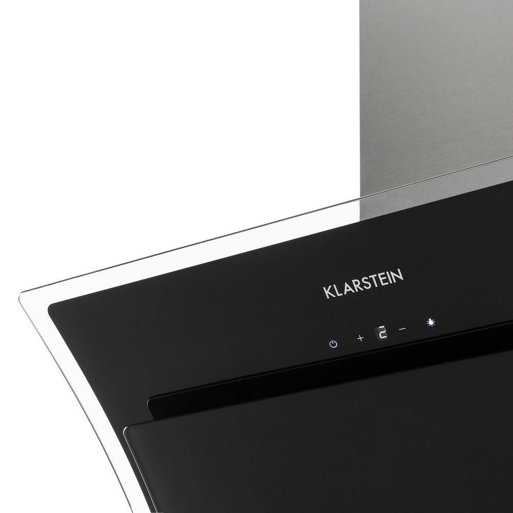 Mimoriadny pôvab dosahuje digestor Klarstein Sabia svojim dovnútra vsadeným dizajnom ako aj použitým čiernym bezpečnostným sklom. To dodáva nástennému digestoru nádych luxusu v každej kuchynskej linke. Dve zapínateľné lampičky pri varnej ploche jej nie len že dodávajú dodatočné čaro, ale umožňujú jasný pohľad do panvíc a hrncov. Aby nič nerozbilo ušľachtilý povrch, sú všetky ovládacie elementy ako dotykový panel priamo zabudované do skleného povrchu.