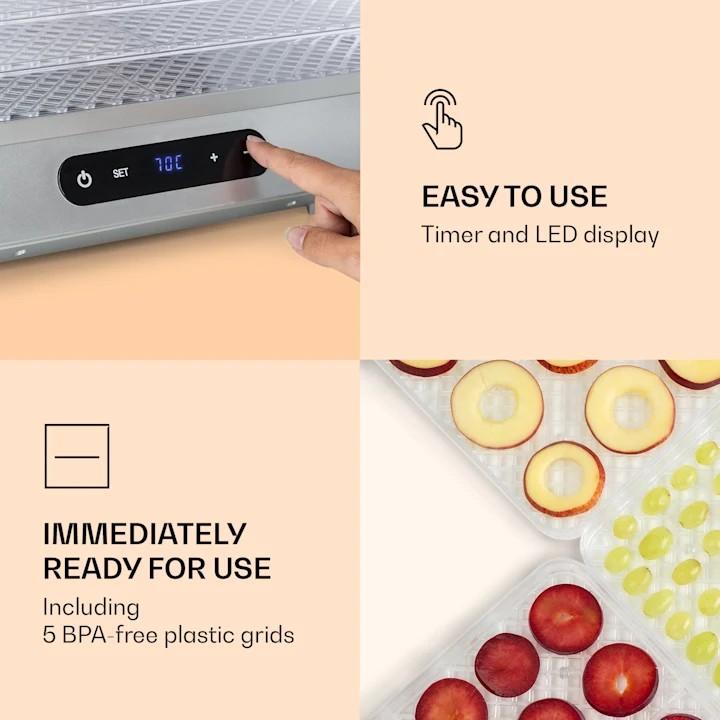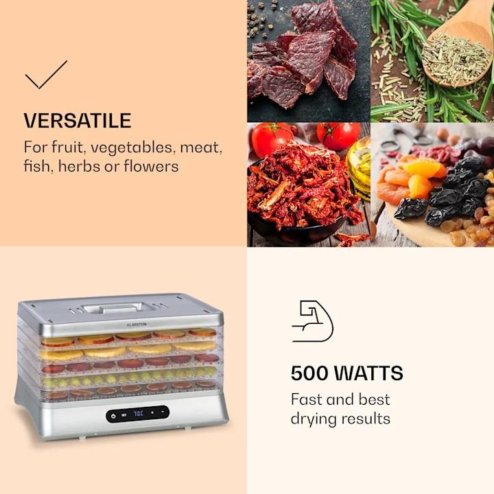 KLARSTEIN SILVER, SUSICKA POTRAVIN, 500 W, LED DISPLEJ, BEZ BPA, 35 – 70 °C, STRIEBORNA 10034429