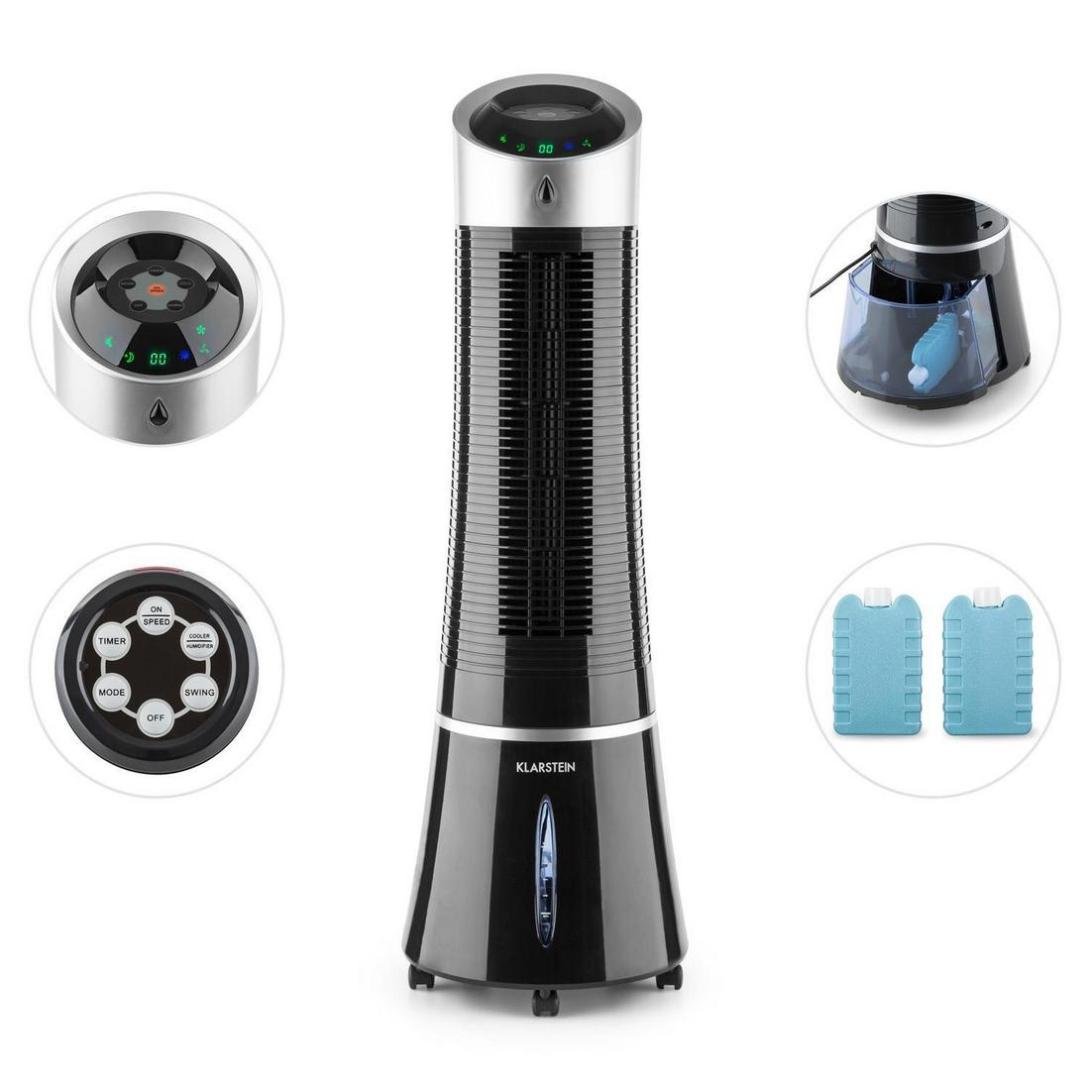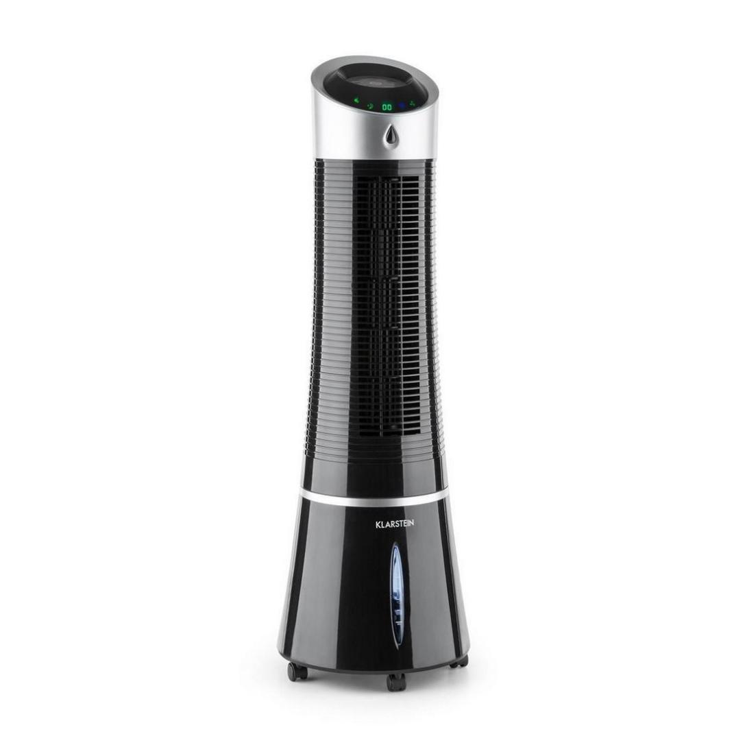 Ventilátor vanie čerstvý vzduch pre zabezpečenie chladenia v troch rýchlostiach. Prepínateľná oscilácia umožňuje rotovať horné dve tretiny zariadenia Klarstein Skyscraper v 180° zľava doprava a späť. Tým sa optimálne posunie aj vzduch vo väčších priestoroch. Pre splnenie všetkých Vašich požiadaviek môže byť ventilátor prestavený z normálnej prevádzky na nočný a prírodný režim. Počas nočného režimu sa ventilátor v 30 minútovom rytme prepne na najbližšiu nižšiu rýchlosť a nakoniec sa vypne, prírodný režim pridáva a uberá rýchlosť ventilátora, čo napodobňuje prirodzený vietor.