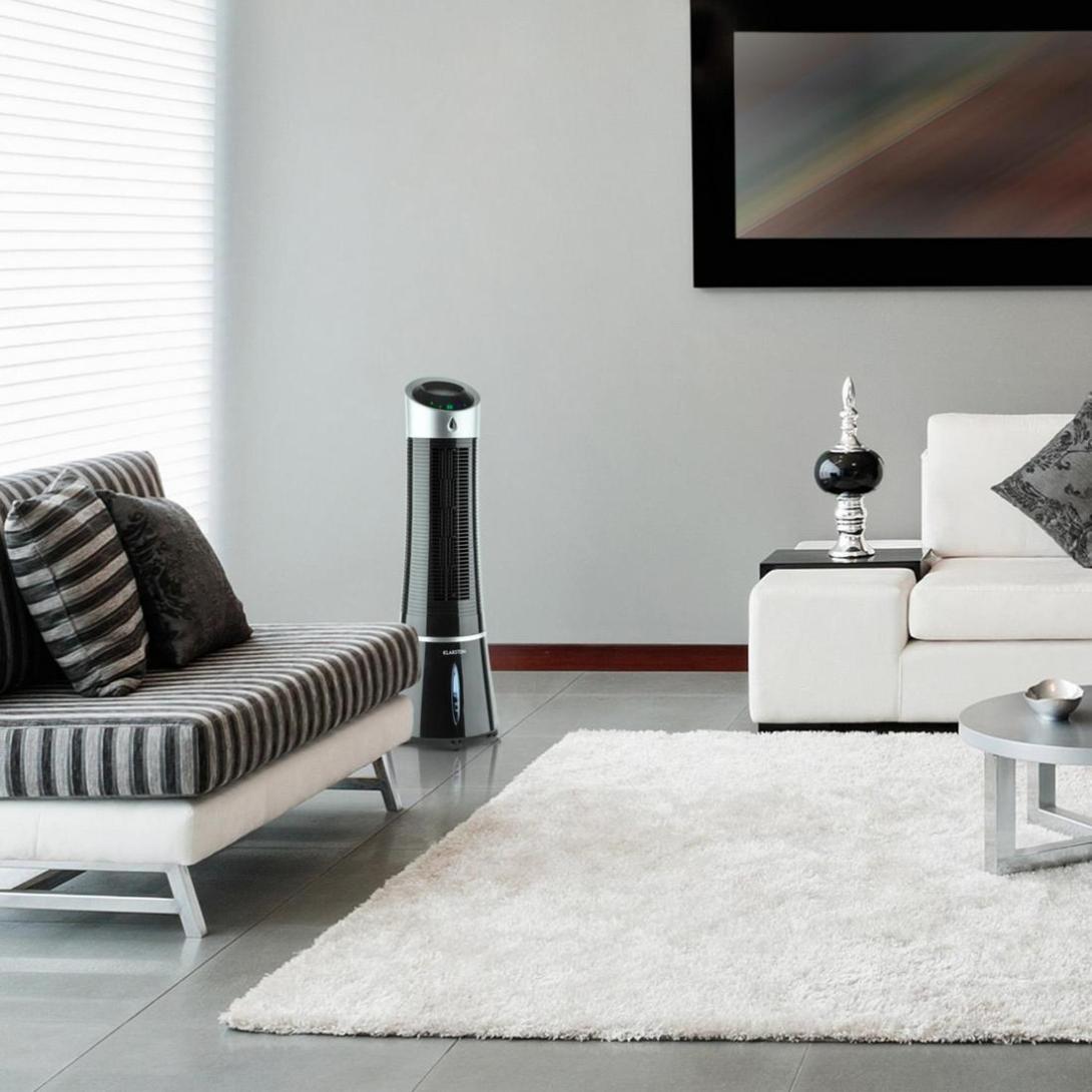 4 v 1 klimatizácia Skyscraper Ice od spoločnosti Klarstein vizuálne aj výkonnostne prevýši svojich kolegov a prináša do Vašich izieb čerstvý vzduch. Priestorovo úsporná veža ukrýva hneď funkcie troch zariadení, šikovne zjednocuje ventilátor, chladič a zvlhčovač vzduchu. Vo svojom najširšom mieste meria stojaci ventilátor len 28 cm a hodí sa teda aj do malých zákutí – aj keď si takéto miesto určite nezaslúži. Jeho moderný dizajn ho ideálne začlení do priestorov kancelárie alebo obývacej izby, ale je opticky dosť neutrálny aj pre umiestnenie v klasickom prostredí.