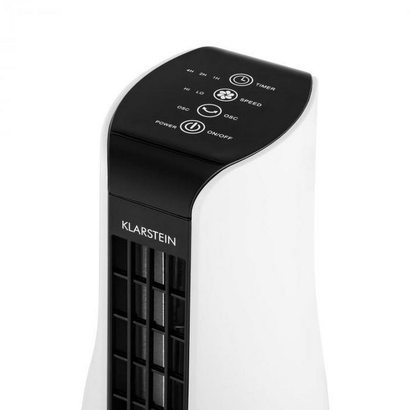 Mini vežový ventilátor vanie čerstvý vzduch v dvoch rýchlostiach pre zabezpečenie ochladenia. Prepínateľná oscilácia umožňuje nakloniť vežovú časť zariadenia Klarstein Skyscraper Office v uhle 30° zľava doprava a späť. Integrovaná funkcia časovača môže byť použitá pre automatické vypnutie stolného ventilátora po nastavenej dobe. Takže si môžete byť vždy istí, že nie je spustený zbytočne, ani keď ho občas zabudnete manuálne vypnúť. Časovač možno nastaviť v krokoch po 1 hodine od jednej do siedmych hodín.