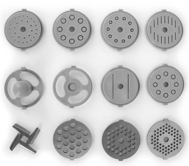 Rôzne nástavce na mletie mäsa a prípravu cestovín